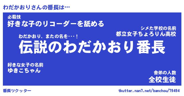 | 伝説のあだ名 | 『伝説の竜騎士わだかおり』 |
