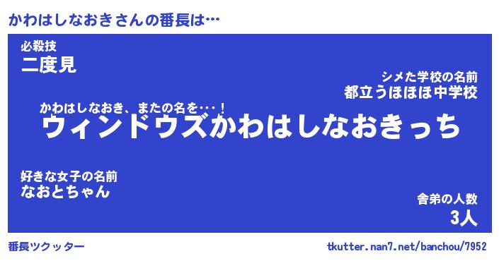 | 伝説のあだ名 | 『伝説の竜騎士かわはしなおき』 |