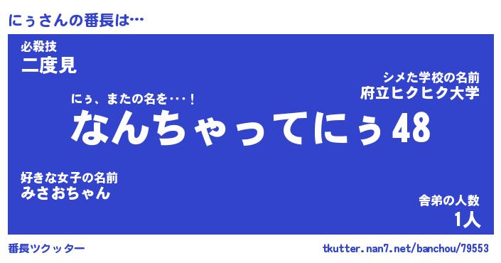 | ポケモン風あだ名 | 『ニゥチュウ』『ニゥダネ』『ヒニゥ』 |