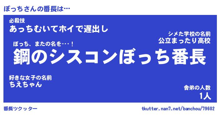 | ヒーロー風カッコイイあだ名 | 『スーパーボッチ』『ウルトラぼっちマン』 |