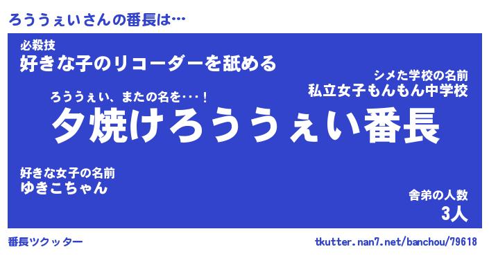 | ヘコむあだ名 | 『ろうふぇ~』『酢こんぶ』『ろうを』 |