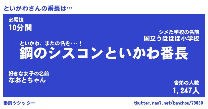 | 伝説のあだ名 | 『封印されしスナイパーといかわ』 |