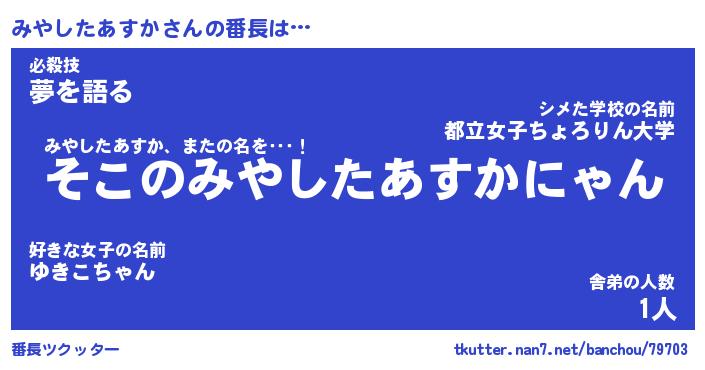 | 肩書あだ名 | 『みやしたあすか御曹司』 |