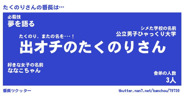 | 肩書あだ名 | 『たくのり店長』『たくのり大統領』 |