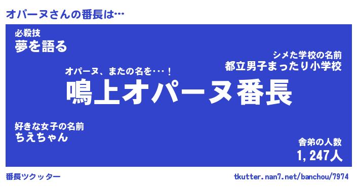 | 2回繰り返すあだ名 | 『オパオパ』『オオパパ』『ふらふら』 |