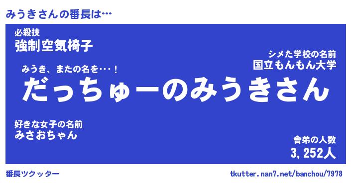 | ヒーロー風カッコイイあだ名 | 『スーパーミウキ』『ウルトラみうきマン』 |