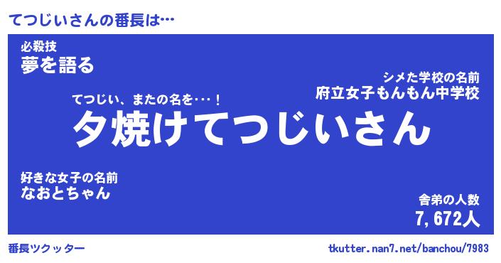 | 意味不明あだ名 | 『ペロリンてつじい』『永久保存てつじい』 |