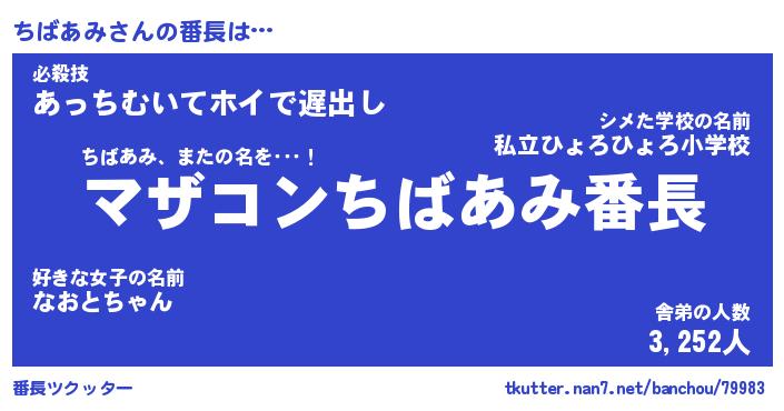 | 肩書あだ名 | 『ちばあみ店長』『ちばあみ国家主席』 |