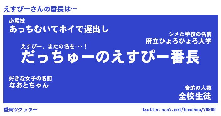 | 意味不明あだ名 | 『ペロリンえすぴー』『永久保存えすぴー』 |