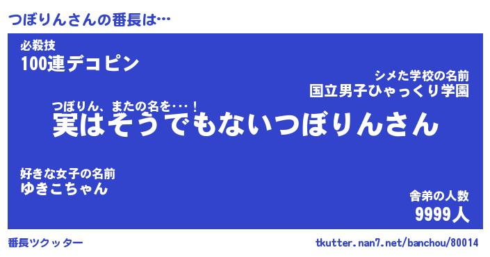 | ピコ太郎風あだ名 | 『ツコ六郎』『ピツ二郎』『ツボ五郎』 |