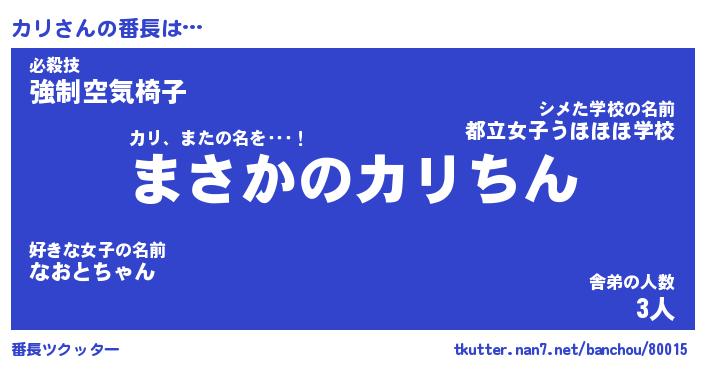 | ヒーロー風カッコイイあだ名 | 『スーパーカリ』『ウルトラカリマン』 |