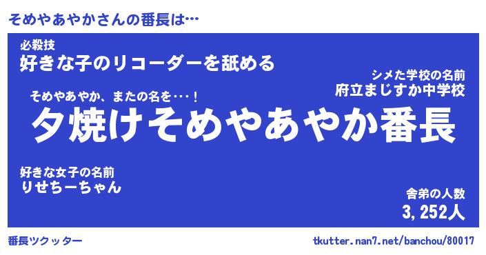 | 肩書あだ名 | 『そめやあやか社長』『そめやあやか班長』 |