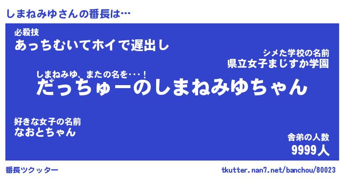 | 意味不明あだ名 | 『ペロリンしまねみゆ』 |
