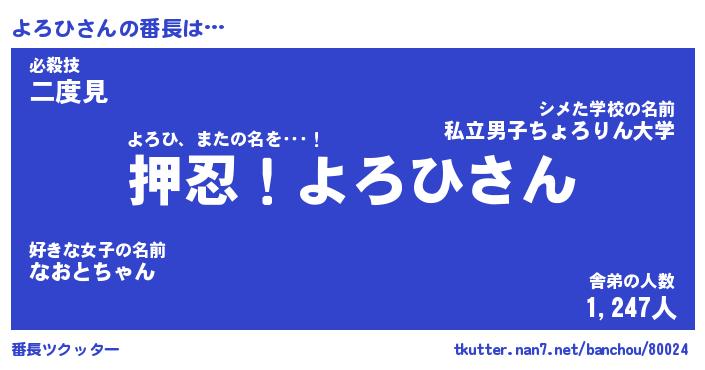 | ヘコむあだ名 | 『よろっふぃ~』『牛乳』『よろっぺ』 |