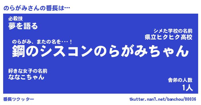 | 意味不明あだ名 | 『ペロリンのらがみ』『永久保存のらがみ』 |
