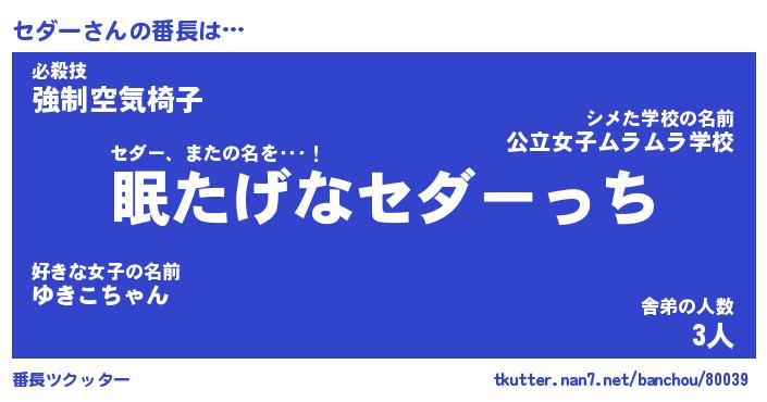 | ヒーロー風カッコイイあだ名 | 『スーパーセダー』『ウルトラセダーマン』 |