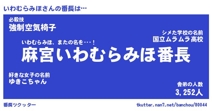| ヘコむあだ名 | 『いわふぇ~』『つくし』『いわお』 |