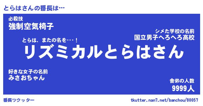 | ヒーロー風カッコイイあだ名 | 『スーパートラハ』『ウルトラとらはマン』 |