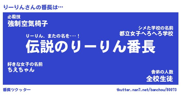 | 意味不明あだ名 | 『ペロリンりーりん』『永久保存りーりん』 |