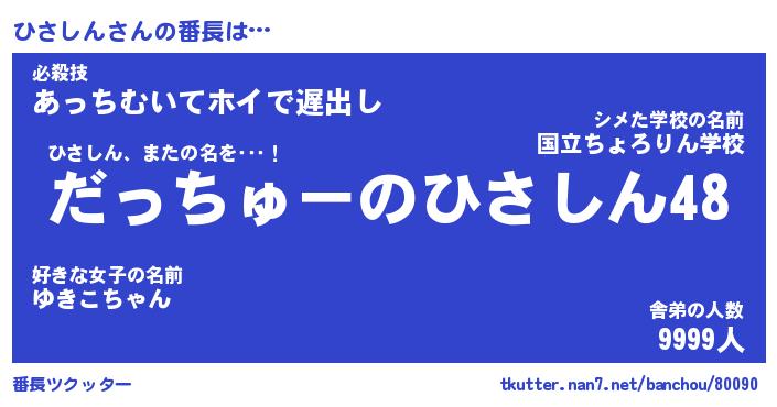 | 伝説のあだ名 | 『伝説のスナイパーひさしん』 |