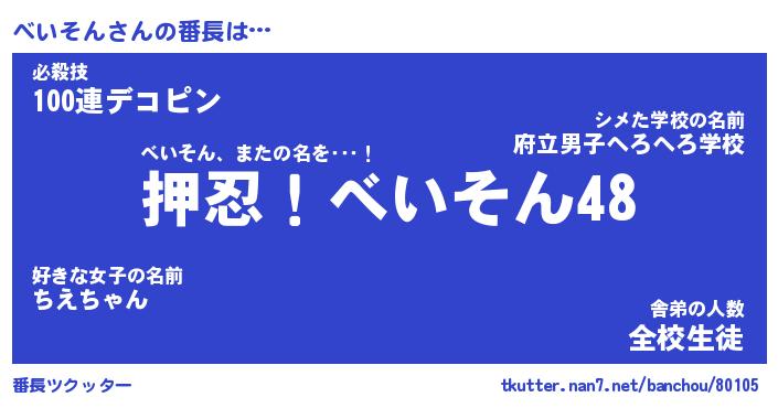 | 意味不明あだ名 | 『ペロリンべいそん』『永久保存べいそん』 |