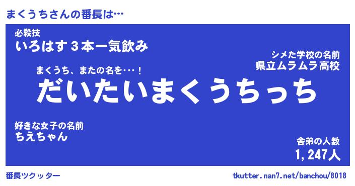 | 意味不明あだ名 | 『ペロリンまくうち』『永久保存まくうち』 |