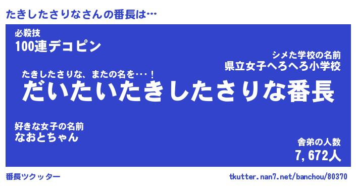 | 2回繰り返すあだ名 | 『たきたき』『たたきき』『ぬれぬれ』 |
