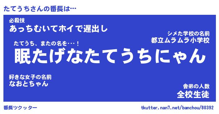 | ヒーロー風カッコイイあだ名 | 『スーパータテウチ』『暗黒騎士タテ』 |