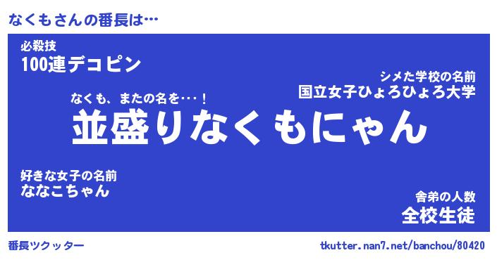 | 肩書あだ名 | 『なくも店長』『なくも総理大臣』 |