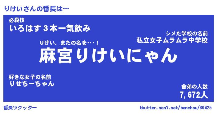 | 意味不明あだ名 | 『ペロリンりけい』『りけいフォーエバー』 |