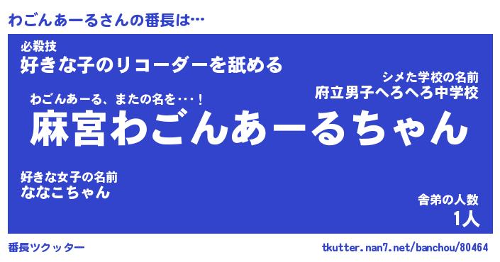 | ヘコむあだ名 | 『わごもー』『酢こんぶ』『わごお』 |