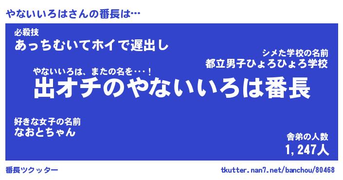 | ヒーロー風カッコイイあだ名 | 『スーパーヤナイイロハ』『銀牙騎士ヤナ』 |