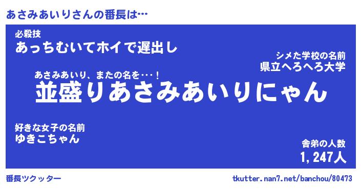 | 肩書あだ名 | 『あさみあいり店長』『あさみあいり塾長』 |