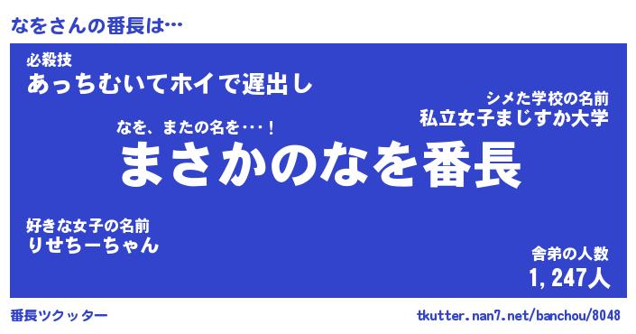 | ファンタジー風あだ名 | 『ナヲフェル』『エターナルナヲー』 |