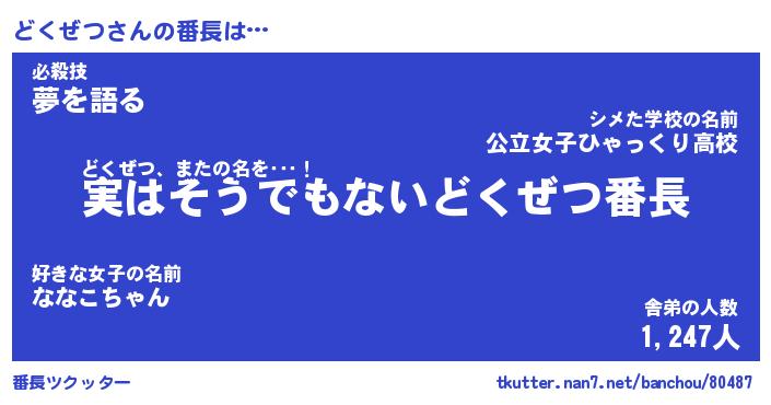| ヒーロー風カッコイイあだ名 | 『スーパードクゼツ』『銀牙騎士ドク』 |