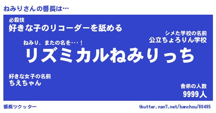 | ヒーロー風カッコイイあだ名 | 『スーパーネミリ』『ウルトラねみりマン』 |