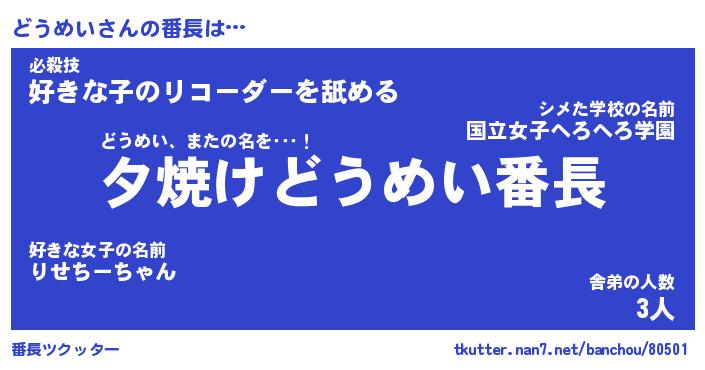 | ポケモン風あだ名 | 『ドウチュウ』『ドウメダネ』 |