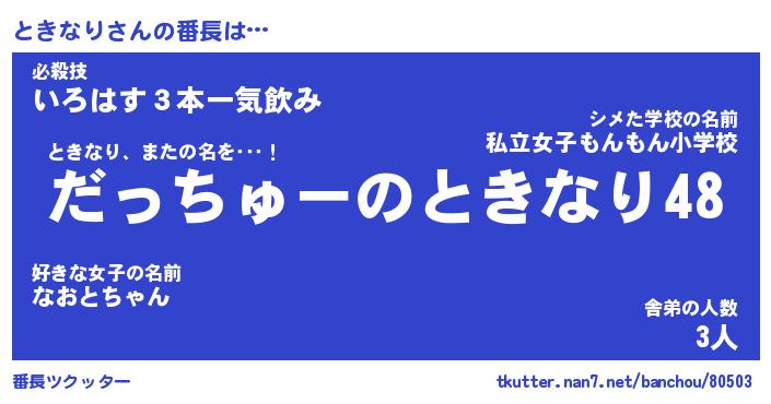| 恥ずかしいあだ名 | 『プリティーときなり』『ときっちょ』 |