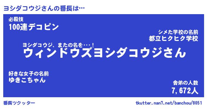 | 欧米人風あだ名 | 『マイケルヨシダコウジ』 |