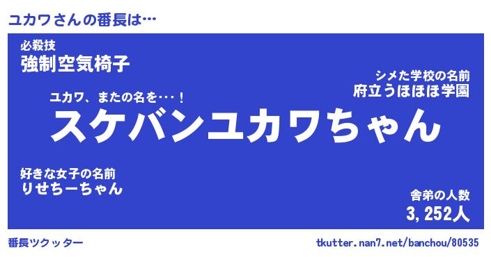 | 意味不明あだ名 | 『ペロリンユカワ』『ユカワフォーエバー』 |