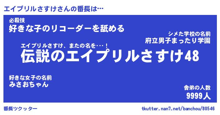 | 伝説のあだ名 | 『伝説の傭兵エイプリルさすけ』 |
