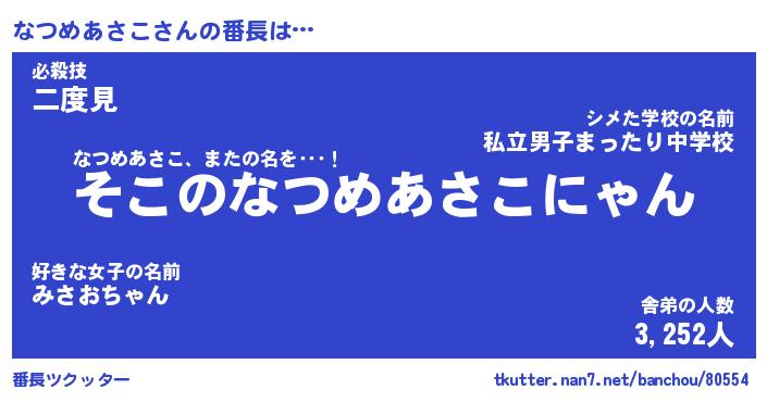 | 肩書あだ名 | 『なつめあさこCEO』『なつめあさこ大統領』 |