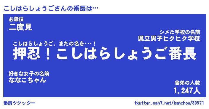 | 肩書あだ名 | 『こしはらしょうご御曹司』 |