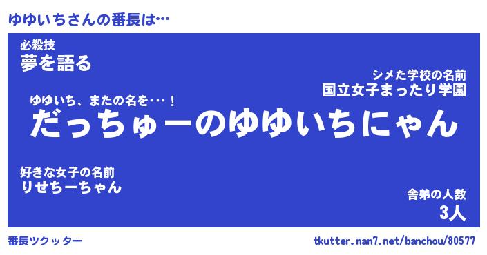 | ヒーロー風カッコイイあだ名 | 『スーパーユユイチ』『魔戒騎士ユユ』 |
