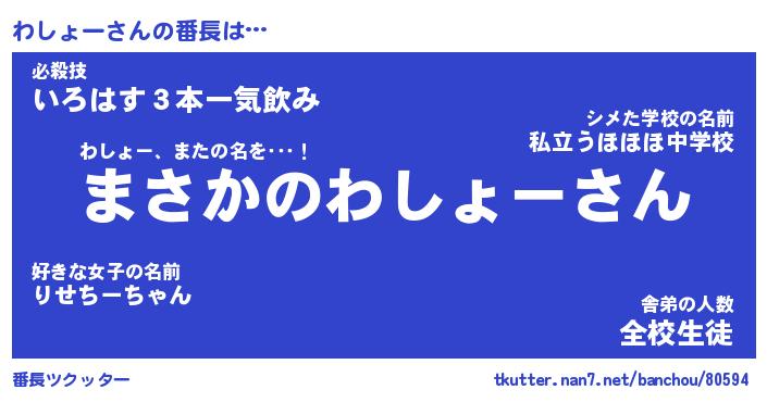 | 男性向けラノベタイトル風あだ名 | 『わしょーの憂鬱』 |