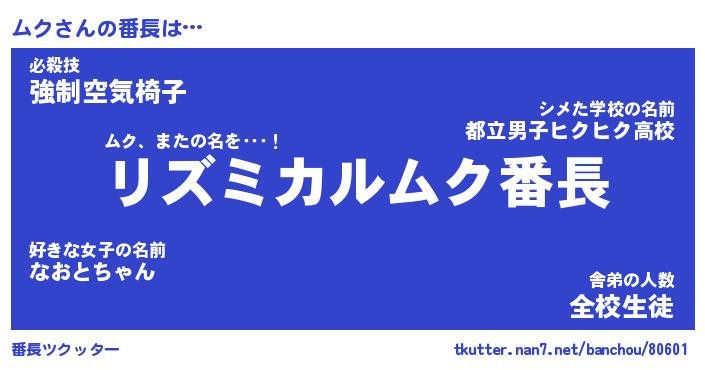 | ヘコむあだ名 | 『ムクもー』『つくし』『ムクぷりん』 |