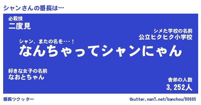 | ヒーロー風カッコイイあだ名 | 『スーパーシャン』『ウルトラシャンマン』 |