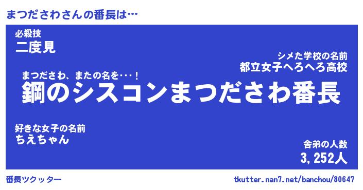 | ヘコむあだ名 | 『まつもー』『酢こんぶ』『まつ太郎』 |
