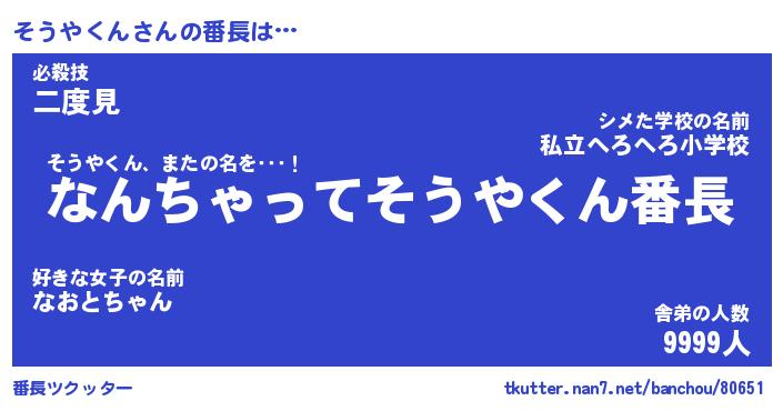 | 伝説のあだ名 | 『伝説のスナイパーそうやくん』 |