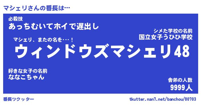 | 意味不明あだ名 | 『ペロリンマシェリ』『永久保存マシェリ』 |